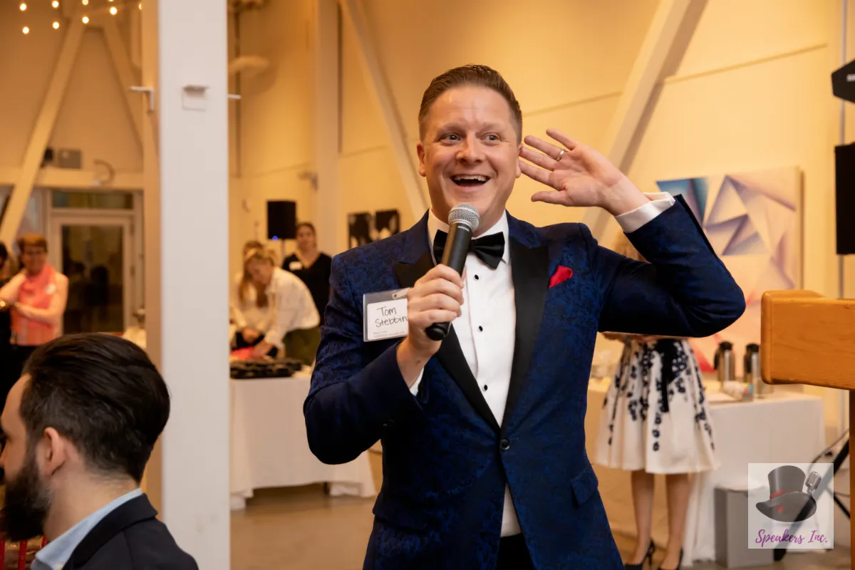 Whether it’s as an emcee, awards host, roastmaster, or celebration coordinator, Tom Stebbins has the versatility and expertise to elevate any event. With his innate ability to connect with diverse audiences, Tom ensures that your organization or honorees take center stage, crafting personalized material that resonates with the theme and objectives of your event. From corporate galas to charity fundraisers, Tom Stebbins has a knack for striking the perfect balance between entertainment and purpose, leaving a lasting impression on attendees.